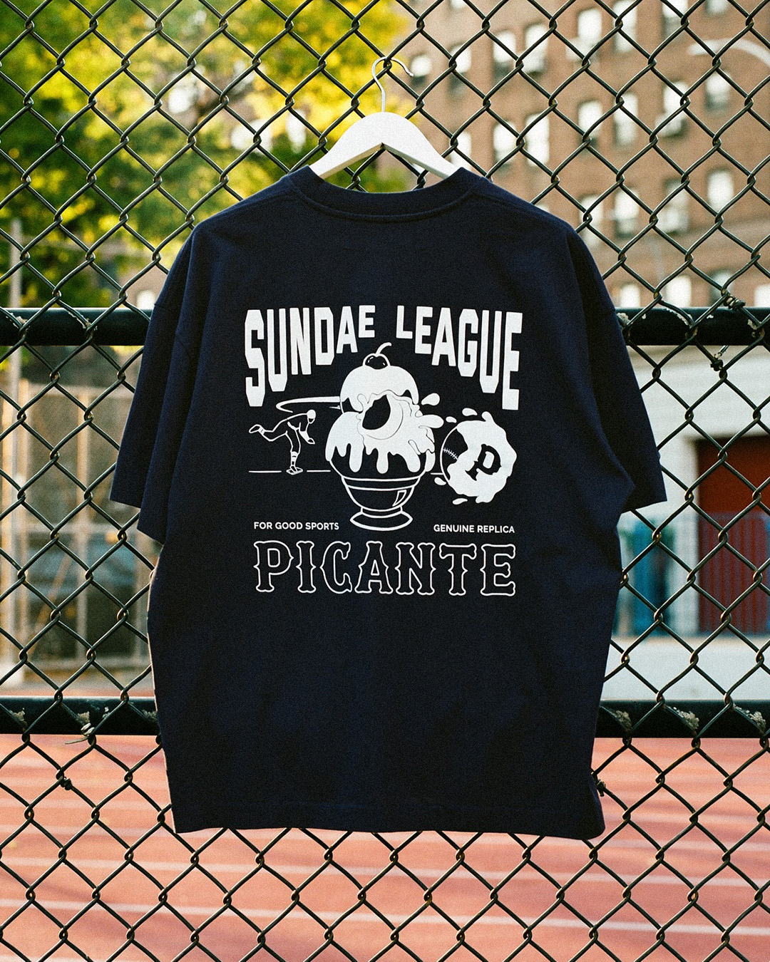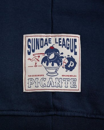 - Gothic baseball-esc typeface for them to use across various pieces. This was used on the hoodie, knitwear and the caps – also featured on the custom ‘Sundae Social’ sportswear patch.